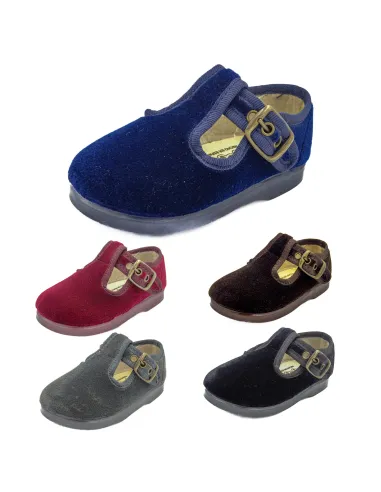 Pepito para niño de terciopelo, lleva un cierre con hebilla.
